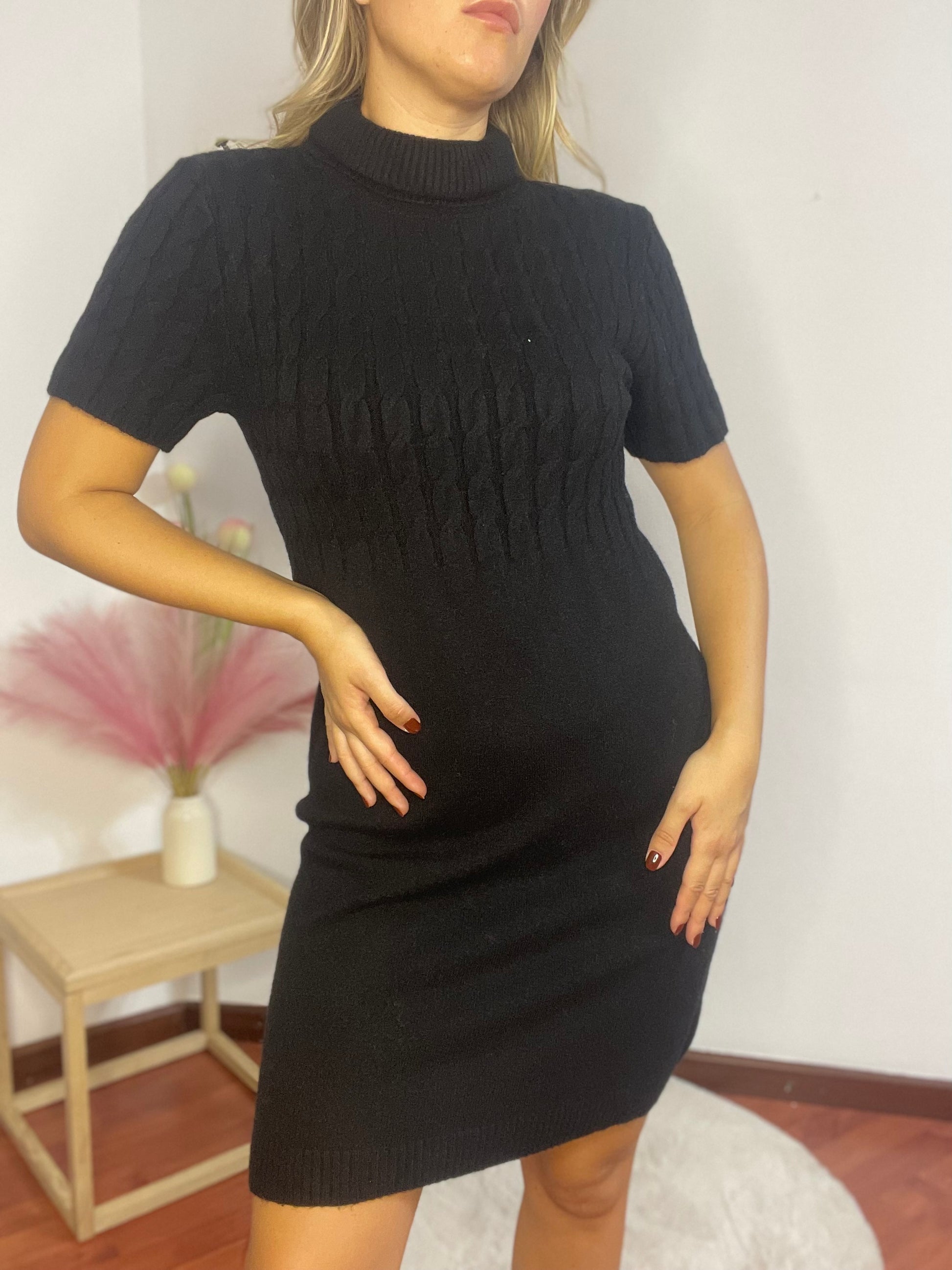 Abito a manica corta con dolce vita e particolarità della lavorazione in treccia sulla parte superiore. Super morbido e non punge.